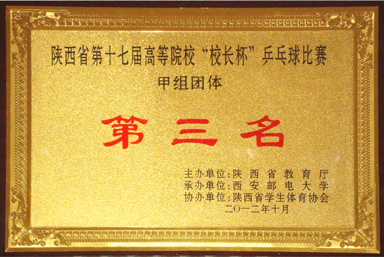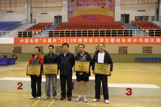 由陕西省教育厅主办、西安邮电大学承办、陕西省大学生体育协会、中国电信陕西公司协办的2012年陕西省高校“校长杯”乒乓球比赛于10月20日—21日在西安邮电大学体育馆隆重举行。全省30多所高校的100多名校级领导参加了本次比赛。