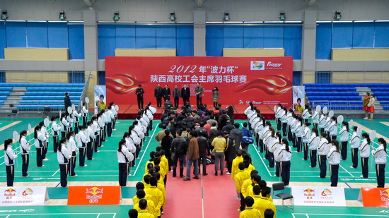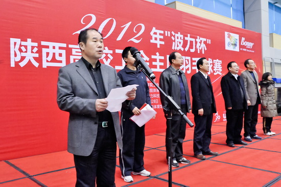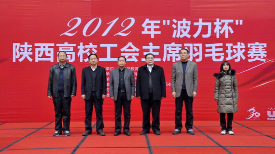 陕西高校工会主席2012年“波力杯”羽毛球赛于11月28日在开元体育馆隆重举行。省总工会副巡视员李岳文,省教育工会主席张敏,开元集团网站党委书记、校长王志刚,开元集团网站党委副书记、工会主席李全武,省教育工会副主席张朝维、李圣,开元集团网站工会副主席张鹏出席开、闭幕式并为获奖运动员颁奖。开、闭幕式分别由省教育工会副主席张朝惟和李圣主持。