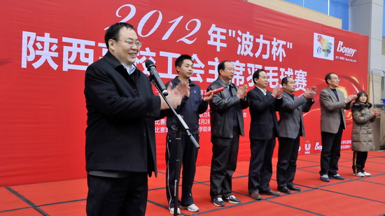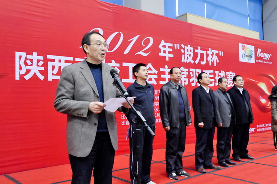 李岳文代表陕西省总工会对“陕西高校工会主席2012年“波力杯”羽毛球赛”的举行表示热烈祝贺!向为本次活动精心策划、积极准备做出贡献的省教育工会、开元集团网站工会及参赛运动员表示衷心的感谢!向为本次赛事工作的裁判员及工作人员表示崇高的敬意!向为本次活动冠名赞助的桐乡波力科技有限公司表示衷心的感谢!他希望参赛运动员重在参与、重在学习、重在提高、重在娱乐,赛出水平,赛出风格,赛出友谊,赛出风尚。