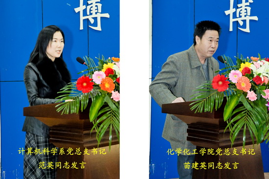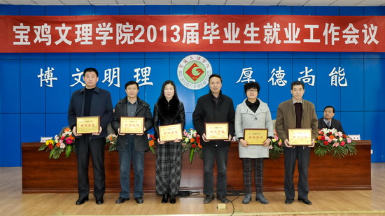 化学化工学院党总支书记苗建英、计算机科学系党总支书记范英在会上交流了2012届毕业生就业工作经验。会议还表彰了机电工程系、计算机科学系、化学化工学院、数学系、政法系、经济管理系等2012届就业工作先进单位,校领导为受表彰的六个院系颁发了奖牌。