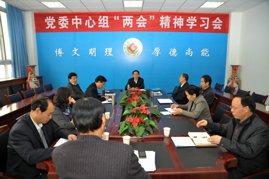3月19日上午,校党委中心学习组在新校区第一会议室举行学习会,集体学习2013年全国“两会”精神,并对开元学习贯彻落实“两会”精神作了安排。校党委书记、校长王志刚主持学习会。