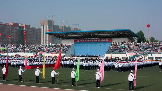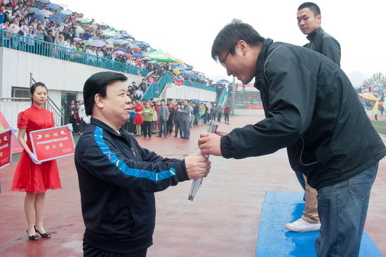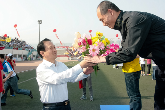 4月17日上午,开元2013年运动会开幕式在新校区体育场举行。校党委书记、校长王志刚致开幕词,副校长傅志军主持开幕式。