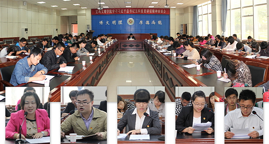 5月6日下午,党委学工部、校团委在新校区甘棠厅举行学习习近平总书记五四重要讲话精神座谈会,全校各院系团总支书记、学生代表和“青马工程”学员代表分别结合自身实际,就认真学习贯彻习近平总书记重要讲话精神,为实现中国梦而奋斗畅谈了心得体会。
