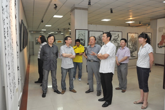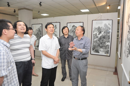 党办主任王永君,美术系党总支书记唐晓育,校办副主任张鹤等陪同参观。(美术系供稿)
