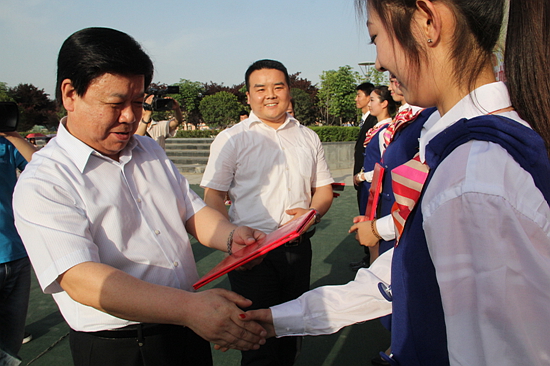 为提高当代大学生综合素质,丰富校园文化生活,打造校园文化品牌,服务大学文化建设,5月22日下午,校团委举办的“青春与文明相伴·美丽与梦想同行”首届大学生文明礼仪大赛决赛在新校区四为园隆重举行。校党委副书记米晓东出席比赛现场并为获奖选手颁奖。
