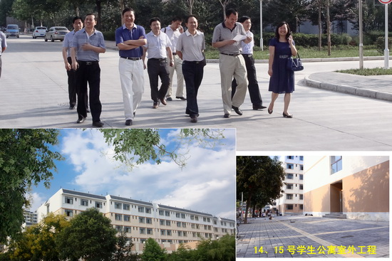 在14、15号学生公寓楼建设工地,校领导仔细察看了户外工程建设情况,详细询问了室内水、电、网络、架子床、衣柜、书桌等基本住宿设施的安装进展情况。在新校区北门改造建设工地,校领导察看了工程建设情况,相关部门负责人对建设项目作了详细的汇报,校领导在听完汇报后,对建设中存在的问题,提出了明确的建议和意见,要求相关部门尽快落实。并要求施工单位要加快施工进度,确保工程质量,保证按期交付使用。同时,还要求相关部门及时清理工地周边的建筑垃圾,创造一个良好的外部环境,给新生和家长留下一个美好的校园印象。