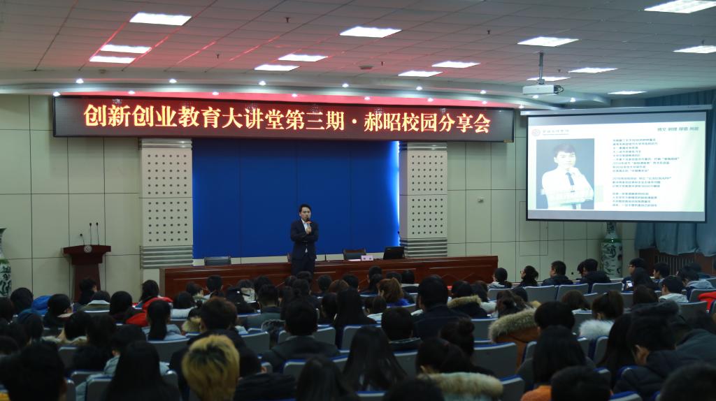 12月8日下午,开元2011级校友,西安曲江创客大街运营VP、双创负责人,陕西运璟网络联合创始人兼COO,2017年西安市“闪耀星青年”创业之星郝昭在新校区木铎厅作了题为《和时间做朋友,不负光阴岁月》的创新创业励志报告。