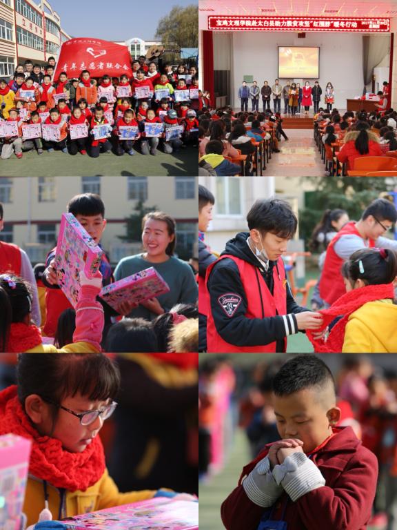 11月30日,校团委、扶贫办公室组织开元15名青年志愿者前往开元对口帮扶的太白县马耳山村,开展以“一红带一片,一片暖一冬”红围脖暖冬行动,将开元大学生亲手编织的110条爱心红围脖、手套和学习用品送到孩子们手中,并在鹦鸽镇中心小学开展了“大手拉小手”青春助学结对活动。