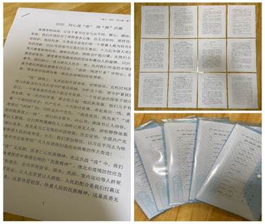 外国语学院承办的“抗疫情浓,共诉心声”故事讲述大赛,用文字、音频、视频等形式呈现学生疫情期间感触最深的照片、视频、新闻报道等背后的故事,坚定学生抗疫必胜的信心,传播抗疫青春热情。此项活动共收到9个学院的语音、视频、文字作品89份。经专业教师初评,遴选音视频作品16件、文字作品12件入围决赛。经研工部、学工部、学院党委副书记、专业教师、心理教师评审组进行终评,文学与新闻传播学院梁泽的《战疫之家—我的家庭纪实录》等5件作品荣获一等奖,音乐学院汤晓的《战“役”先锋》等9件作品荣获二等奖,外国语学院王文卓的《奋战疫情,守护爱情》等12件作品荣获三等奖。