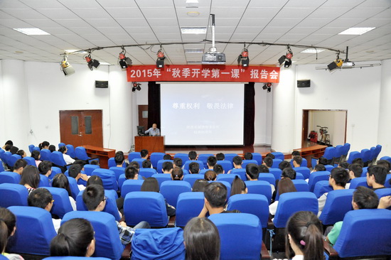 秋季开学第一课系列报告会的举行,进一步弘扬了爱国主义精神和民族精神,培养了法制意识和爱国情怀。文学与新闻传播学院、化学化工学院、哲学系、政法学院、教育学院、经济管理学院、美术学院、物理与光电技术学院、机械工程学院、电子电气工程学院、计算机学院700余人参加了报告会。(宣传部 文/陈宇秦 图/钟磊)