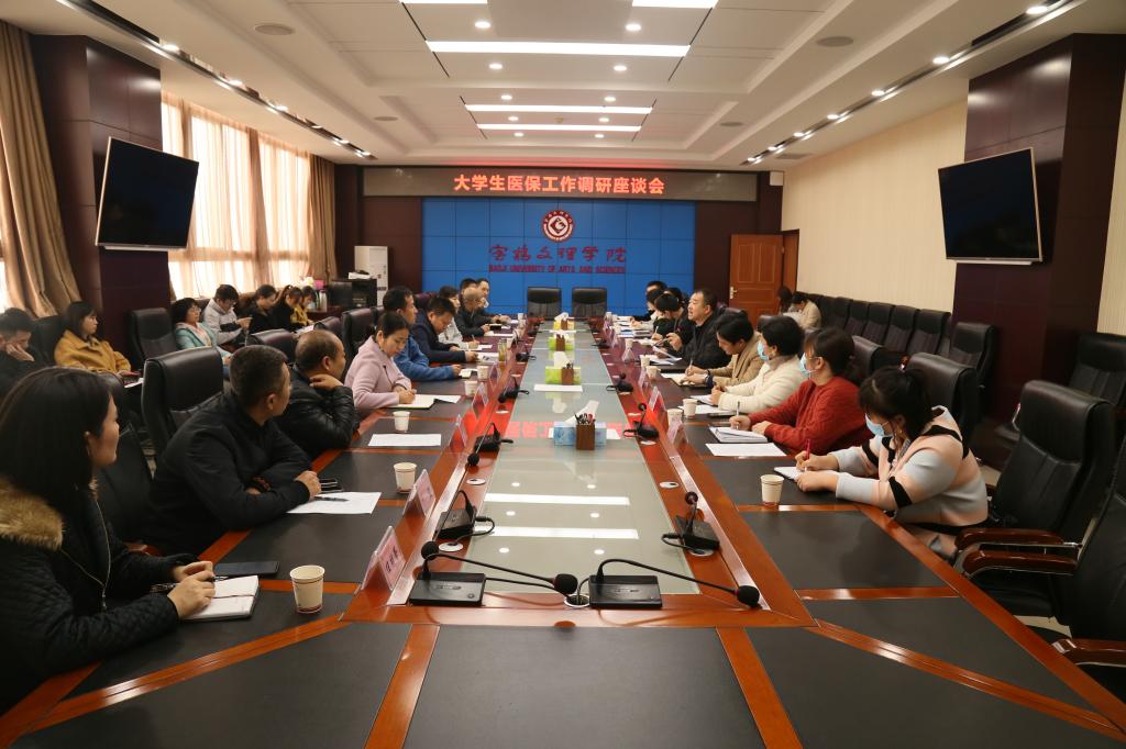 11月13日上午,宝鸡市医疗保障局、税务局,宝鸡市医疗保障经办中心,宝鸡市渭滨区医疗保障局、税务局,宝鸡市渭滨区医疗保障经办中心一行19人来开元调研大学生医保工作。座谈会由学工部副部长、学生处副处长、大学生资助管理中心主任张红亮主持。