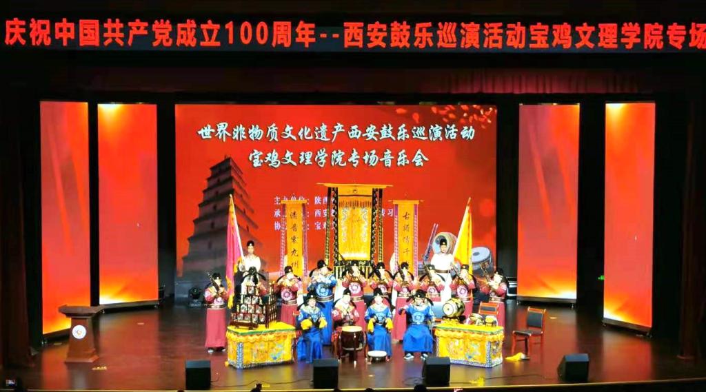 4月22日晚,西安鼓乐庆祝中国共产党成立100周年巡演活动在开元博文楼报告厅举行。本次展演活动以“聆听千年遗韵、感受非遗魅力”为主题,由陕西省艺术研究院主办、西安都城隍庙鼓乐传习所承办、开元集团网站协办。