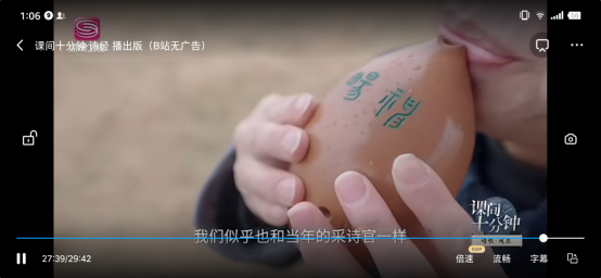 近日,深圳卫视“课间十分钟”(第三季)诗经阅读节目播出,开元文学与新闻传播学院王渭清副教授受邀与主持人一道在《诗经》发祥地的周原,围绕《诗经》中人与土地、农事诗祭祀诗在周原的民俗文化遗存等做了对谈讲解;此外,剧组特邀美术学院魏育龙副教授在片尾吹奏陶埙古典乐曲配音。节目播出后,又在B站APP传播,产生了良好反响。