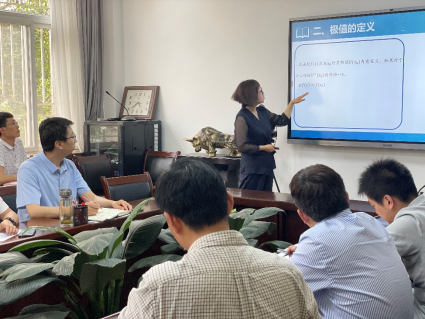 活动分为两个阶段进行。首先,王钟斐老师以《一元函数的极值与人生曲线》为题,结合自己丰富的教学经验从创设情境、极值的定义、极值的判定三个方面深入浅出地讲授了这节课。王老师的示范课教学内容丰富,语言通俗易懂,引人入胜,展现了过硬的教学能力,获得了参会老师的一致好评。整个示范教学活动气氛活跃,教师参与积极性高。