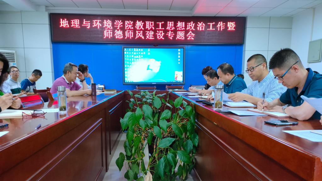 6月2日,地理与环境学院在明理楼201会议室召开教职工思想政治工作暨师德师风建设专题会议。学院全体教职工参加了会议,会议由学院党委书记俱国鹏主持。