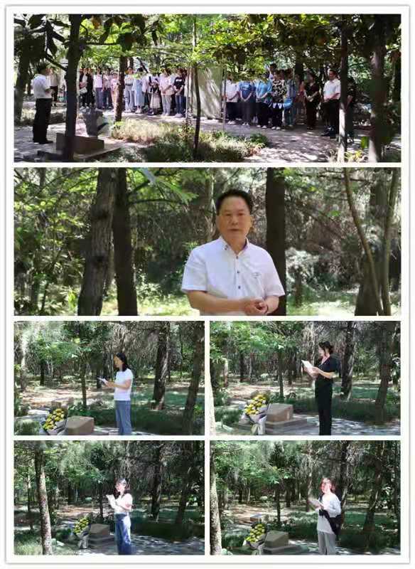 随后,全体师生前往宝鸡烈士陵园。在开元1988级著名校友任培烈士墓前,学生代表敬献鲜花,全体师生三鞠躬并默哀。任培烈士的同学、马克思主义学院何振鹏教授怀着沉痛的心情,向师生们讲述了任培烈士的先进事迹和勇救落水儿童并不幸遇难的过程,号召全体师生要积极向任培烈士学习,要心怀善念,努力学习,不忘初心,勇挑重担。马克思主义学院教师聂晓静表示:“纪念是为了更好的前行,任培烈士身上所表现的英烈精神是中国精神的重要组成部分,是中国价值的重要体现,是中国力量的重要源泉。”外国语学院大学英语教工支部纪检委员汶静表示:“在和平年代,我们更应该铭记英雄先烈,要以任培烈士为榜样,在实践中学习真知,锻炼意志,培养品格。”文学与新闻传播学院学生代表杨欣煜表示:“要从英雄事迹中汲取力量,崇尚英雄、铭记英雄、感恩英雄、捍卫英雄、学习英雄,力争做一个像任培烈士那样具有爱国情、强国志、报国行的优秀中国人。”外国语学院学生代表曹冉冉表示:“作为新时代的大学生,要学习任培烈士奋勇向前、不畏艰险、乐于奉献的高尚情操。”悼念仪式结束后,全体师生祭扫了烈士墓,擦洗了纪念碑,帮助烈士陵园打扫了卫生。