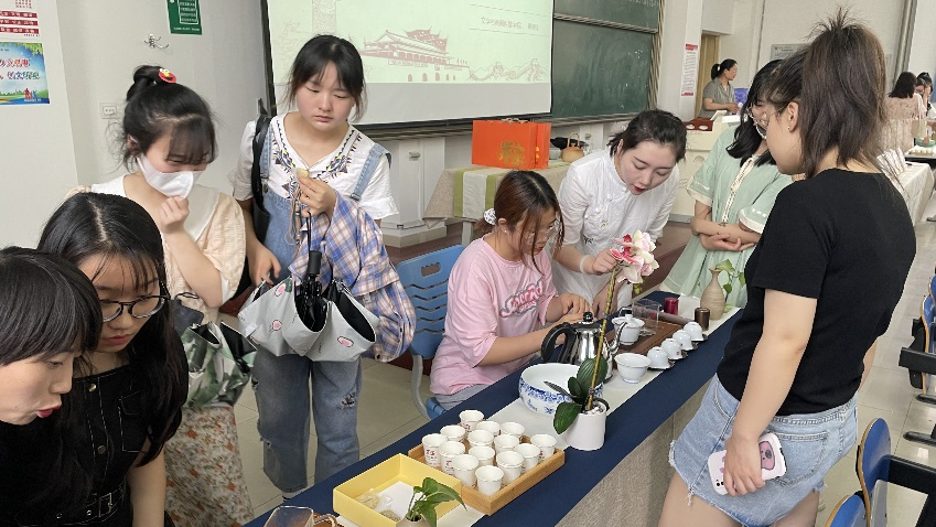 书香溢文理,茶韵品中华。6月8日上午,文学与新闻传播学院在立心楼119教室举行了一场别开生面的《大学生礼仪形象》课程思政实践教学。活动由文传院播主教研室联合大益茶业集团宝鸡大益茶体验馆举办,黄理红老师主持,全校160余名同学参加了活动。