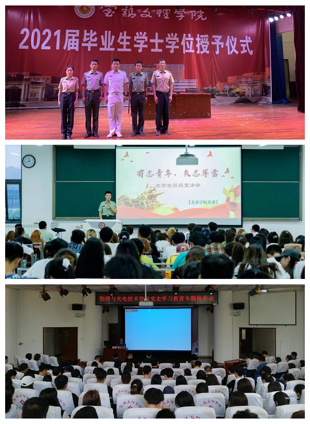 近日,校武装部按照学校党委的总体部署,组织开展了第二期大学生征兵政策宣讲活动,本次宣讲活动共进行19场次,16个学院1800余名学生参加了活动。