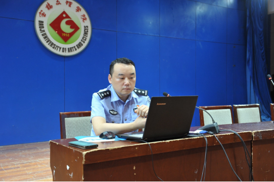 会上,宝鸡市公安局刑侦支队反诈中心张仪警官结合多起发生在身边的真实案例向同学们生动得再现了电话诈骗现场的场景,重点介绍了六类常见电话网络诈骗的具体形式和防范措施,为全体同学全面科普了电信网络诈骗的相关知识。他强调,网络刷单、贷款是大学生最易上当的诈骗形式,在面对此类骗局时同学们应时刻保持警惕,不贪图蝇头小利,坚信“天上不会掉馅饼”,冷静理智,正确判断避免上当受骗。