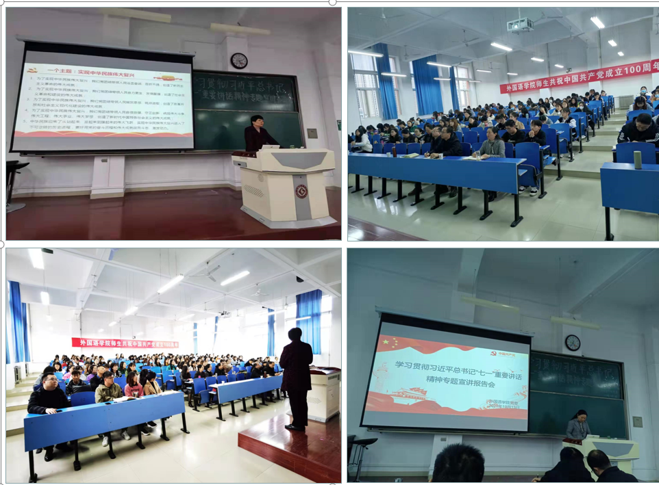 外国语学院师生党员、入党积极分子100余人参加了报告会。(外国语学院党委 文/梁小云 图/周浩桐 审核/官莉萍)