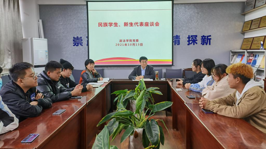 10月13日下午,政法学院在高新校区思贤楼519室召开“学党史,办实事”民族学生及新生代表座谈会,学院党委书记白志勇、全体民族学生以及2021级新生代表参加了座谈会。座谈会由党委副书记、副院长赵阿妮主持。