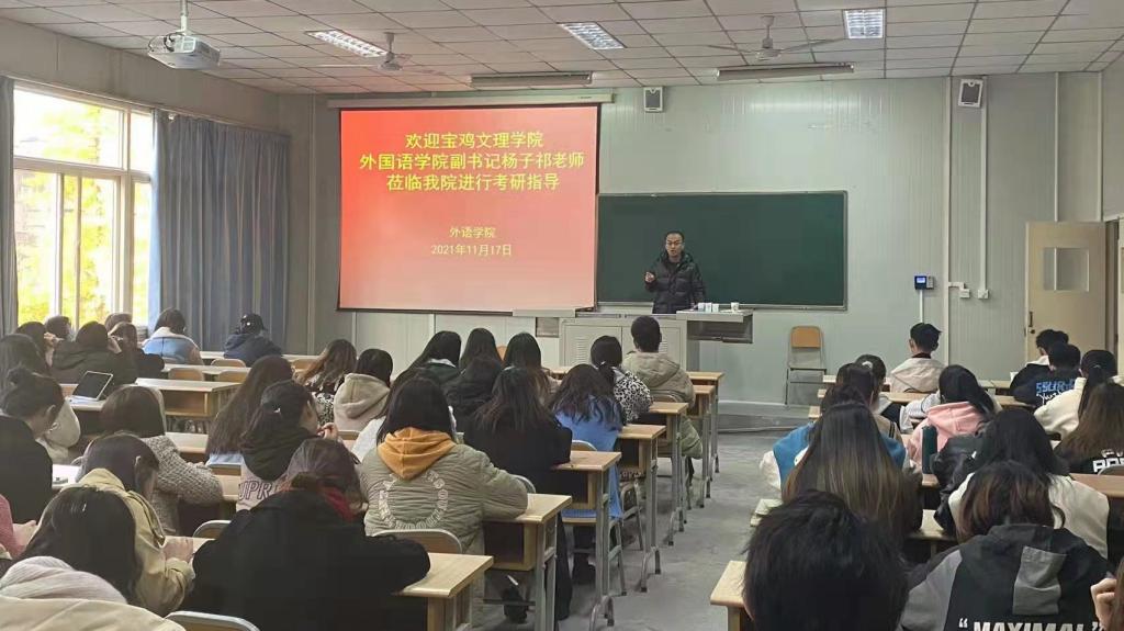 17日下午,为推进研究生联合培养工作,安康学院外国语学院院长张哲华邀请杨子祁为安康学院英语本科三年级学生作了研究生招生宣讲,会后即有数名同学表示将第一志愿报考开元硕士研究生。