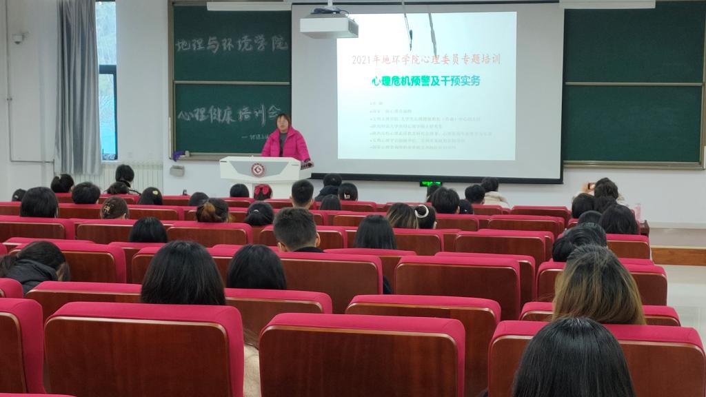 为普及心理健康知识,加强心理委员队伍建设,进一步发挥朋辈互助在心理健康教育工作中的重要作用,11月24日下午,地理与环境学院特邀开元心理健康教育与咨询中心副主任许婧老师作了题为《心理危机预警及干预实务》的专题培训。学院全体班主任、班级心理委员、2021级宿舍舍长90余人在博文楼副楼105教室参加了培训,培训会由学院党委副书记梁文博主持。