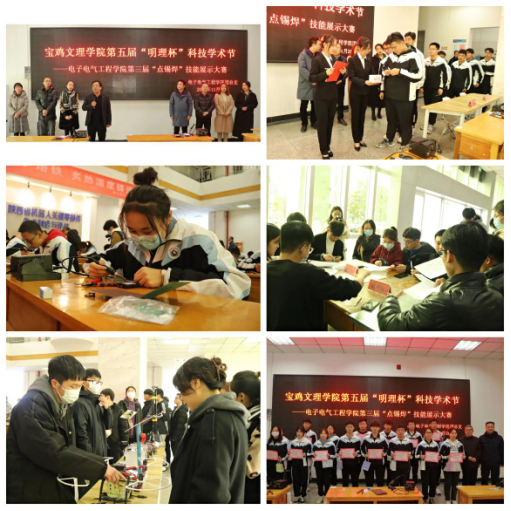 为了激励学生积极参与科技创新活动,大力弘扬“工匠”精神,进一步提高实践能力,电子电气工程学院团总支于11月26日举办第三届点锡焊技能展示大赛,此项活动也是学院参加学校第五届“明理杯”科技学术节的一项特色品牌活动。本次活动的主题为“左手铜丝,右手烙铁,炙热温度铸造梦想”,预赛从11月10日开始,经过五场比赛,评选出30名学生参加了最后的决赛。