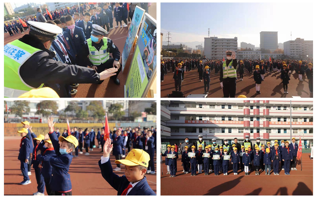 12月2日下午,附属学校与渭滨交警大队桥南中队联合开展了交通安全进校园活动。活动中,民警给同学们讲授了交通安全知识,讲解了交通安全宣传版面,带领同学们学习了基本的交通手势,开展了交通知识有奖竞答,发放了交通安全小黄帽和交通安全知识宣传单,为附属学校的孩子们上了一堂生动的交通安全知识课。