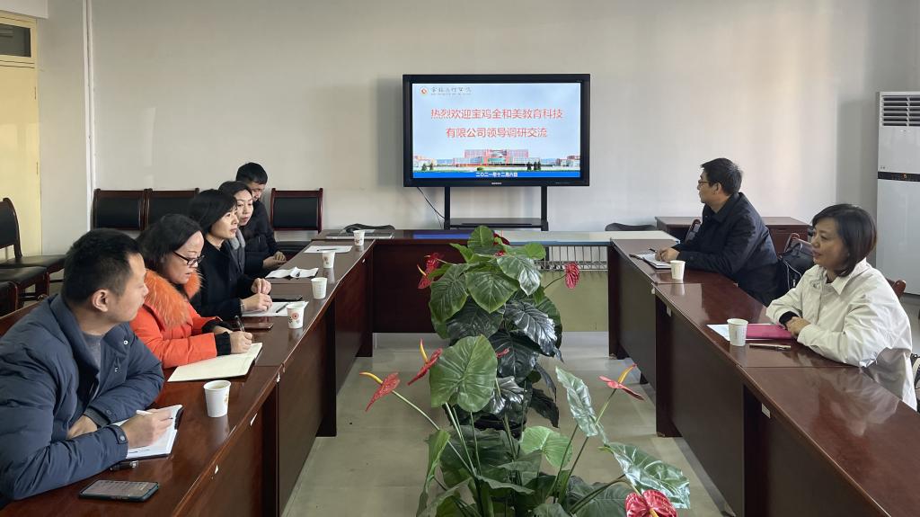 12月6日,宝鸡全和美教育科技有限公司项目负责人王秋虹一行来教育学院进行调研交流。教育学院院长马多秀主持调研交流活动。