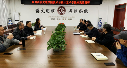 12月10日上午,西安文理学院美术与设计学院院长田军、系主任陈晓璐一行4人来开元美术学院就学科建设、研究生培养等方面开展调研交流。美术学院班子成员与教师代表在在高新校区博文楼1301会议室与田军一行开展了座谈交流,会议由美术学院院长李强主持。