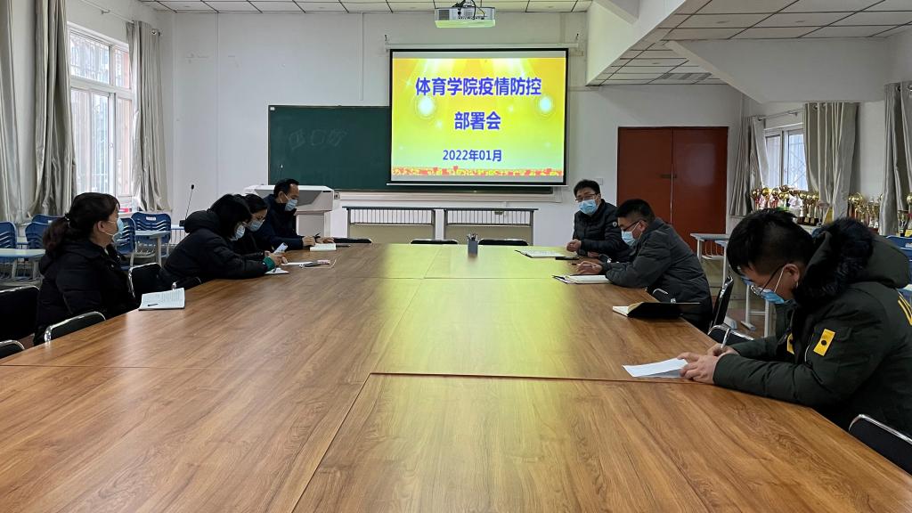 1月3日下午,体育学院召开疫情防控工作紧急会议。学院党政领导、办公室工作人员、学生辅导员、班主任参加了会议。会议由院长于奎龙主持。