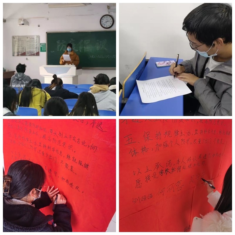 义不容辞做表率。在疫情防控的艰难时刻,为切实做好防疫工作,增强同学们的疫情防控意识,学院党员防疫先锋队主动倡议,以签订承诺书的形式,倡导广大学生积极落实防疫责任,用实际行动践行铿锵誓言,诠释使命担当。学生党员何丽蓉表示:疫情就是命令,作为党员在这场大考面前,我们必须冲锋在前,为同学们做好表率、做好服务。入党积极分子栗晨梅同学说:“签订承诺书,既是担当,也是约束。作为入党积极分子,我们要勇于承担责任,带头承诺,以更高的标准更严的要求做出表率,以实际行动为打赢疫情防控阻击战贡献自己的力量。”