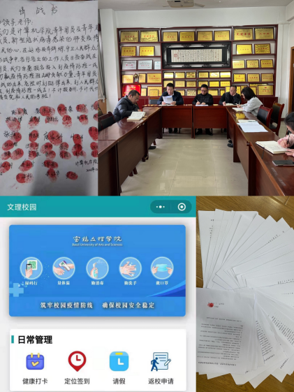 教师科技助阵,研发微信小程序。学院教师党员充分发挥先锋模范作用,带领学生科技创新团队充分发挥自己专业优势,自主研发了“文理校园”疫情防控微信小程序,目前该款疫情防控管理小程序已上线健康日报、定位签到、请假报备等功能,实现了在校师生日常防疫信息的填报、收集和管理等常用需求。使得指挥调度高效化、势态研判科学化、工作流程精细化、人群管控精准化。做到小程序发挥大作用,筑牢校园疫情防线。