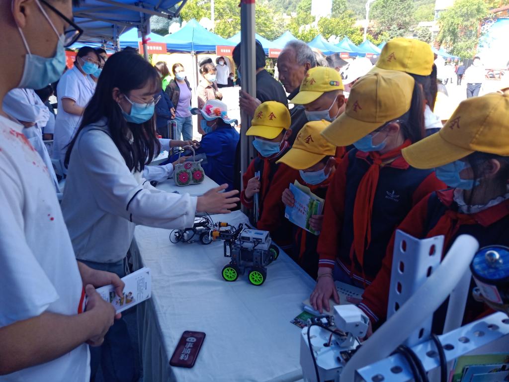 上午,校科协、科创科普教育基地联合机械工程学院、电子电气工程学院参加了宝鸡市科技活动周启动仪式,在太白县集中展示了开元师生科技成果。机械工程学院展示了智能手势机器人、多工位自动植树装置;电子电气工程学院展示了5G远程智能清洁船、低空智能风光互补发电系统、智能交互扎草固沙多功能机器人。志愿者耐心、细致、精彩地讲解吸引了前来观展的群众,通过科普讲解和互动体验,营造了浓厚的爱科学、学科学的氛围。