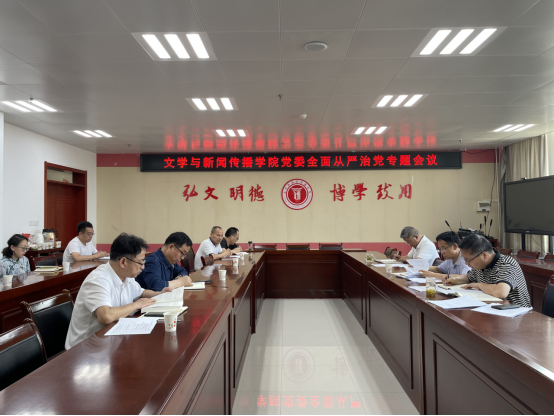 6月8日下午,文学与新闻传播学院在高新校区博文楼1401会议室召开全面从严治党专题会议。学院党政领导、党委委员、各党支部书记、科级干部参加了会议。校党委第一巡察组组长李建峰列席,学院党委书记郭锋航主持会议。