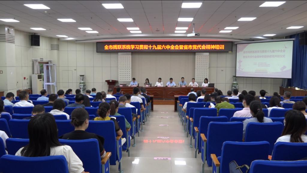 6月15日上午,宝鸡市残联系统学习贯彻党的十九届六中全会暨省市党代会精神培训班在开元高新校区木铎厅开班。宝鸡市残疾人联合会党组书记、理事长高清苗,党组成员、副理事长张永鹏、杨文,校党委宣传部部长冯飞龙,马克思主义学院党总支书记张选朝、院长刘晓勇,宝鸡市干部教育培训高校基地主任王红梅参加了开班仪式。开班仪式由市残联副理事长张永鹏主持。