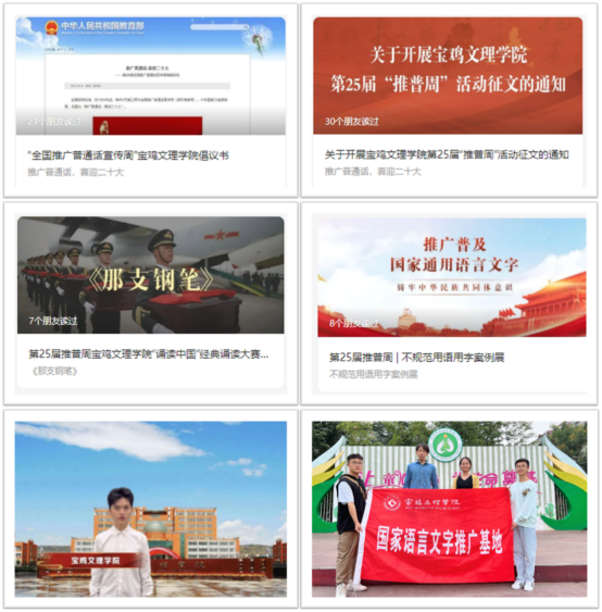 一是向全校发出倡议书,号召全体师生积极参与到国家通用语言文字推广活动中来;二是开展第25届推普周征文,说普通话,写规范字,讲好中国故事;三是举办开元集团网站“诵读中国”经典诵读大赛优秀作品展,赓续红色基因,传播中国价值;四是携手宝鸡铁路小学开展推普活动,用有温度的声音传递伟大的中国梦;五是开展不规范用字案例展,增强语言文字规范意识;六是参与中国教育电视台推普周特别节目节庆日诵读直播,践行语言文化的育人使命。
