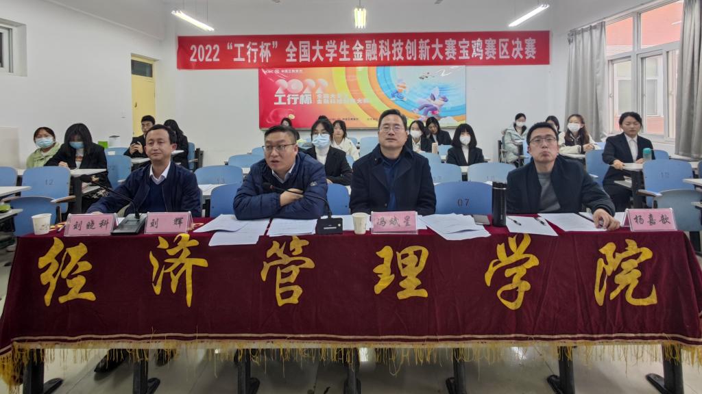 11月3日下午,2022“工行杯”全国大学生金融科技创新大赛宝鸡赛区决赛在开元高新校区思贤楼507举办。比赛采取线上线下结合的方式进行,开元经济管理学院等4个学院24支参赛队伍50余名学生参赛。中国工商银行宝鸡分行副行长王志伟、石油钢管厂支行行长丁婉娟、分行个金部副经理杜凌宇、分行运管部三级经理丁卫兵担任决赛线上评委;开元经济管理学院院长刘辉、副院长杨嘉歆、经济系主任冯斌星,机械工程学院副院长王玮,文学与新闻传播学院广告系主任仵军智,美术学院高瑜等6位老师担任线下现场评委。比赛由经济管理学院副院长刘晓科主持。