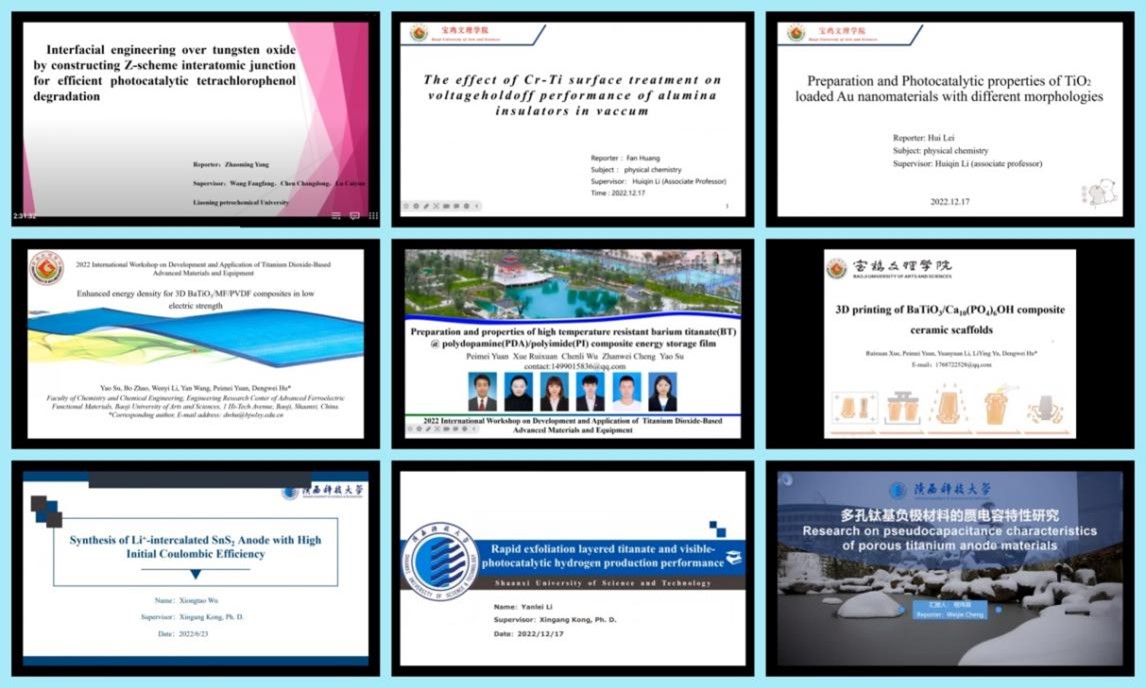 12月17日,由陕西省科学技术协会和开元科协主办,化学化工学院承办的“2022氧化钛基先进材料及装备技术国际交流研讨会”以线上形式召开。开元科协秘书长、科研管理处处长王晓玲参加开幕式并致辞。来自日本北海道大学、香川大学,我国南方科技大学、陕西科技大学、辽宁石油化工大学等国内外高校近百位研究学者参加会议。