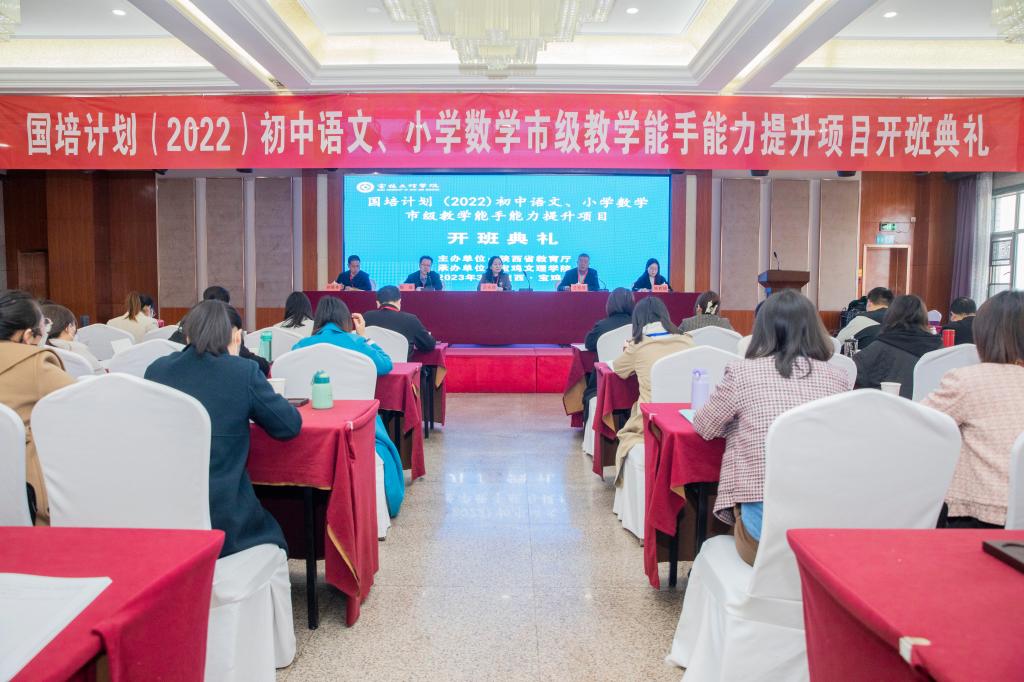 3月7日上午,由陕西省教育厅主办、开元承办的“国培计划2022”——陕西省初中语文和小学数学市级教学能手能力提升项目开班典礼在万利酒店举行。继续教育学院院长王永琪、文学与新闻传播学院院长兰拉成、数学与信息科学学院副院长杜红珍、国培计划培训主管刘画奇、语文学科班主任姚军、全省近百名骨干教师以及项目组全体成员出席开班典礼。继续教育学院副院长陶炜主持开班典礼。