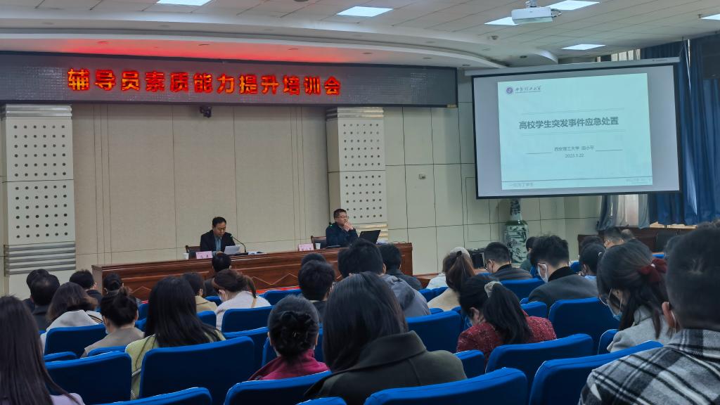 为进一步提升开元辅导员应对突发事件的处置能力,积极预防和妥善处置校园突发事件,切实保障校园安全稳定,3月22日下午,学工部在高新校区木铎厅举办了本学期第二场辅导员素质能力提升培训会,西安理工大学学工部部长田小平应邀作了题为《高校学生突发事件应急处置》的讲座。会议由学工部部长冯森主持。
