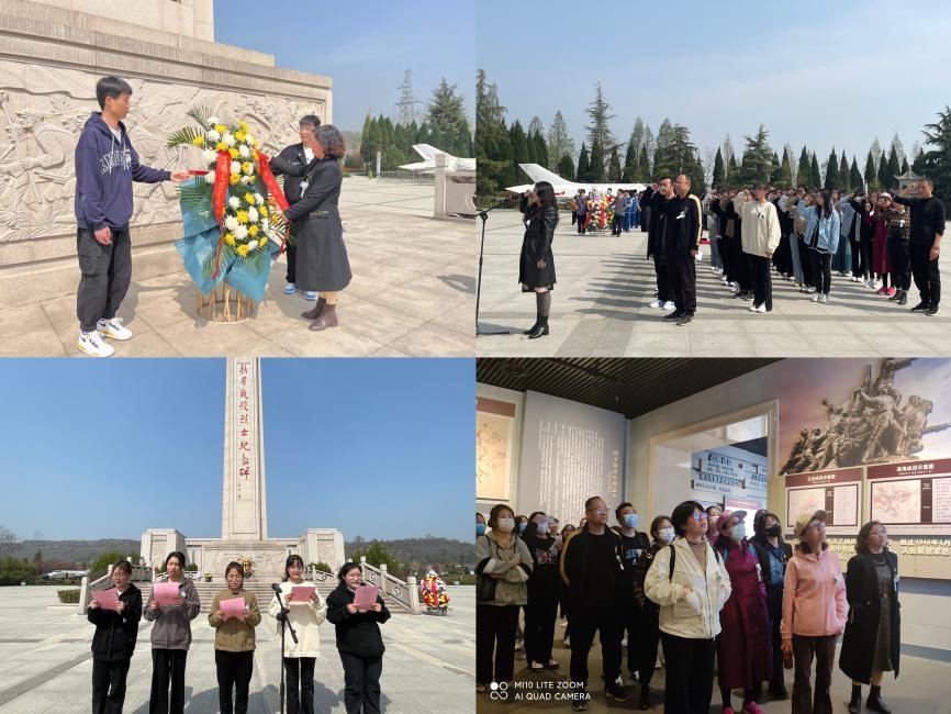 在扶眉战役烈士纪念碑前,学院师生党员整齐列队,庄严肃穆,祭扫仪式在全体师生党员齐唱国歌中拉开序幕。青山肃立,松柏苍翠,学院党委书记官莉萍向烈士纪念碑敬献花篮,全体人员默哀沉痛悼念革命先烈。专业英语教工党支部书记耿秀萍带领全体党员高举右拳庄严宣誓,重温入党誓词,坚定理想信念,永葆入党初心。学生代表集体朗诵《站在烈士纪念碑前》,缅怀革命先烈,弘扬爱国主义精神。全体人员缓步向前,依次绕行一周,瞻仰烈士纪念碑,表达对先烈们的崇高敬意和深切哀悼。仪式后在革命烈士纪念馆里,讲解员将英烈事迹娓娓道来,师生共同回顾了解放宝鸡、解放大西北的峥嵘历史,深切感受到了历史伟业的艰巨不易,革命先烈的英勇故事洗涤灵魂,激励团结奋进。