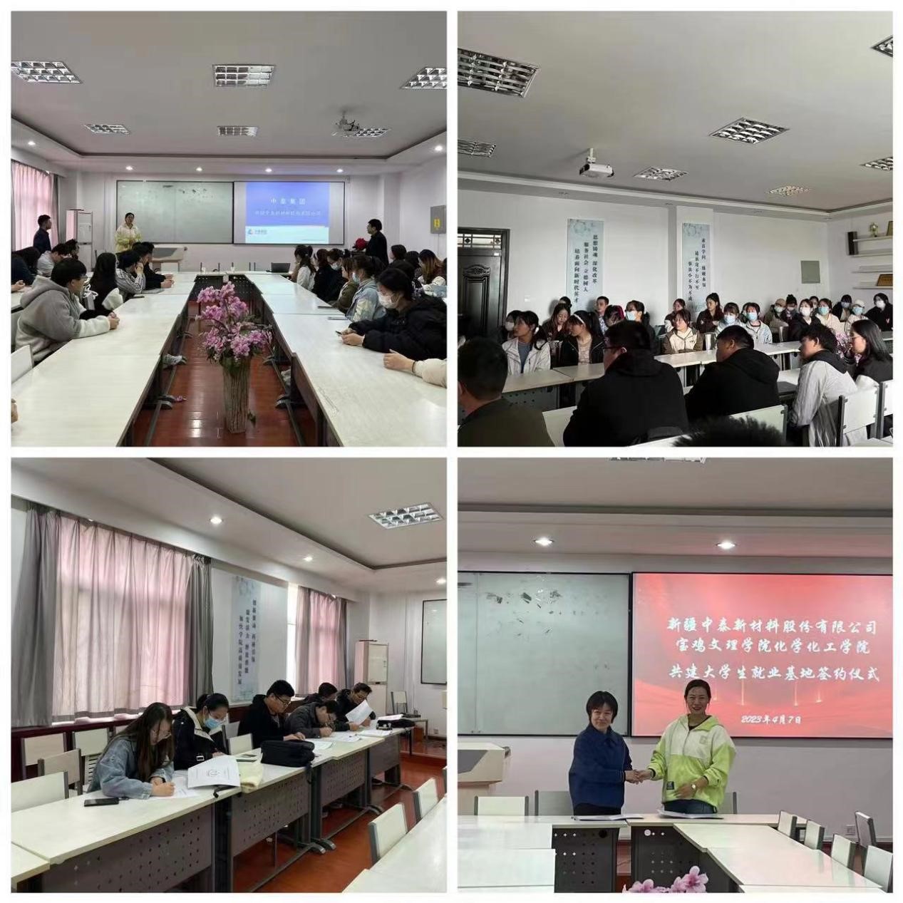 新疆中泰集团是新疆首个进入世界500强的国有企业,用人岗位与学院专业契合度高。在观看企业宣传片后,集团人力资源部负责人艾慧介绍了公司的发展历程、职业发展、薪资待遇、公司福利、岗位需求等情况,耐心解答大家关心的各类问题。宣讲会气氛热烈,同学们争先投递自己的应聘简历,6名毕业生顺利通过面试,与用人单位签定了就业协议书。