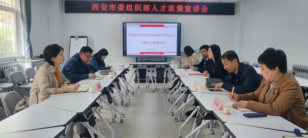 4月11日上午,西安市委组织部党员教育中心主任赵轩一行3人来开元开展人才政策宣讲活动。会议由招生就业处处长范英主持。