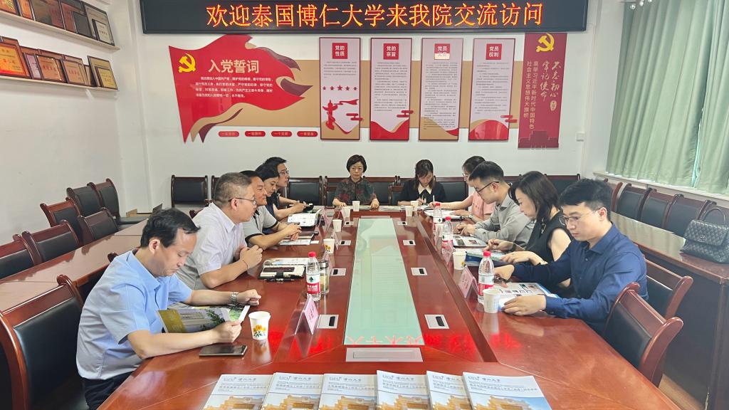 6月13日,泰国博仁大学校长助理兼创新商务与财会学院副院长王珊珊博士、中文国际学院国际事务办公室主任苏泉博士、外事专员向方玉博士一行三人来开元经济管理学院访问交流。经济管理学院院长刘辉、党委书记郝晓炜、副书记薄会颖、副院长刘晓科和杨嘉歆以及青年教师代表参加本次交流活动。
