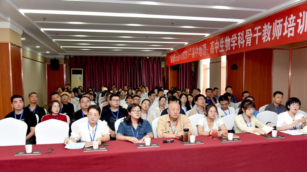 全省各地市近100名参训教师及高中地理学科首席专家宁洁、教学主管李爱叶,项目组全体工作人员参加了开班典礼。(继续教育学院 文、图/邓超 审核/王永琪)