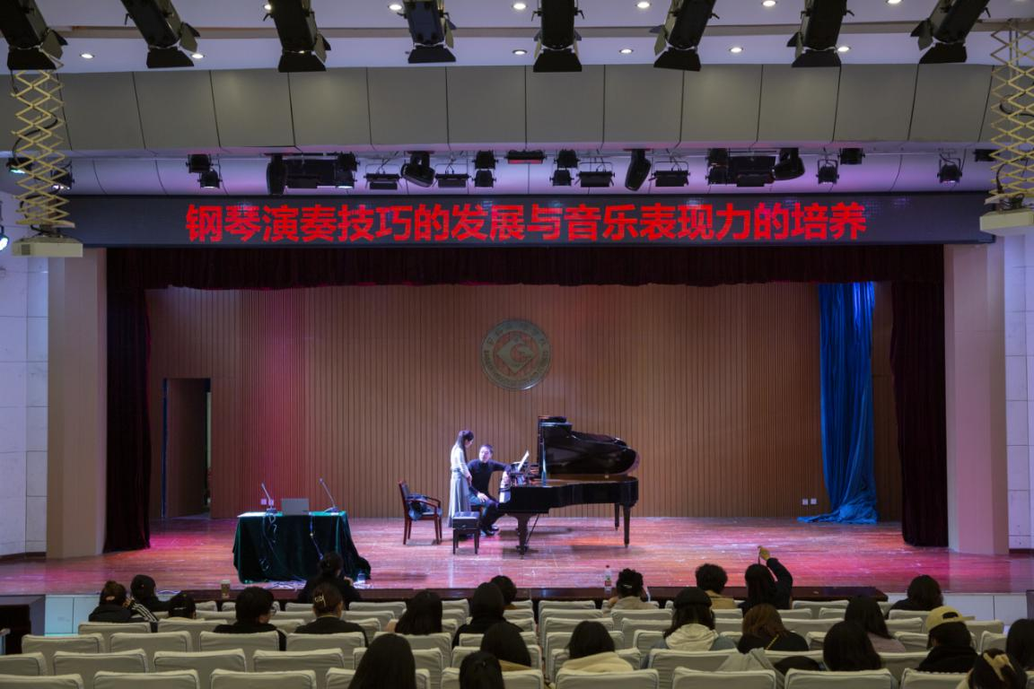 签约仪式结束后,西安音乐学院张洹浩副教授在高新校区音乐厅作了题为《钢琴奏技巧的发展与音乐表现力培养》的学术报告,并作了现场指导教学。当晚,张洹浩副教授、演奏家徐岩松和开元常萌老师共同为大家献上了一台精彩的音乐会,为本次签约仪式画上了圆满的句号。