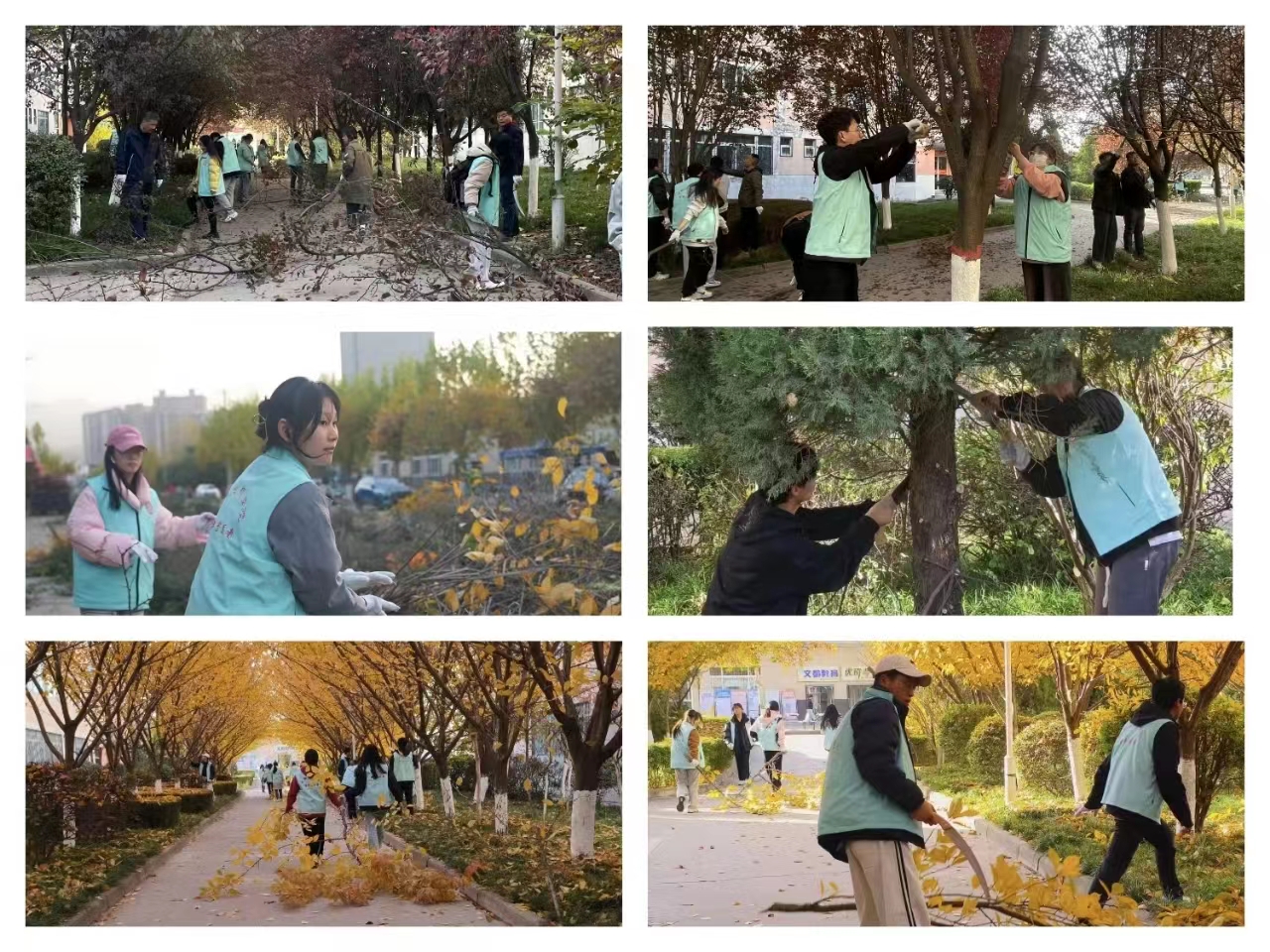 活动中,党员和团员青年志愿者对高新校区2—6号学生公寓、10—12号学生公寓周边的树木进行修剪,并将裁剪的树枝运送到指定区域。志愿者们身着“小青宝”志愿者马甲、挽起衣袖、拎起手锯和修剪钳,穿梭在学生公寓周边的绿化区,挥洒着汗水、用志愿服务书写属于自己的青春篇章,构筑了冬日宝文理校园一道亮丽的风景线。