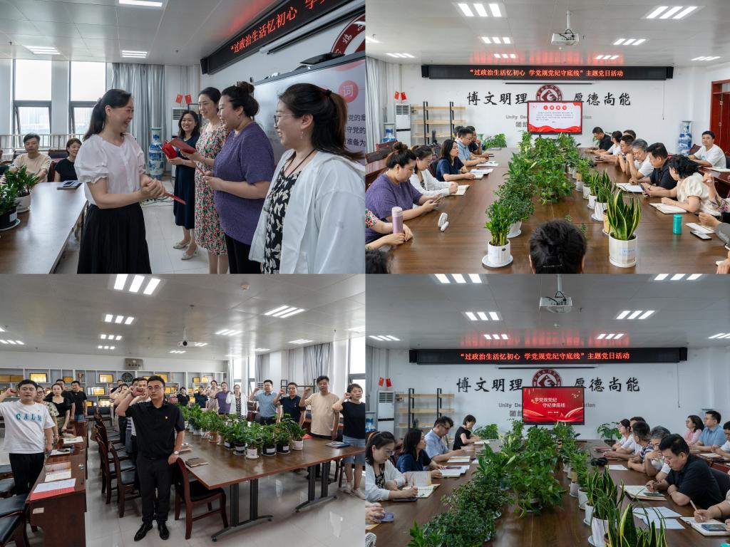 重温入党誓词,坚定理想信念。党员们面对鲜红的党旗,齐声重温入党誓词,铿锵的誓词让党员们仿佛重回加入党组织的那一刻,宣誓着对马克思主义的信仰、对共产主义的信念以及对党和人民的忠诚,激励着党员不忘初心、忠诚担当、践行使命、砥砺前行。